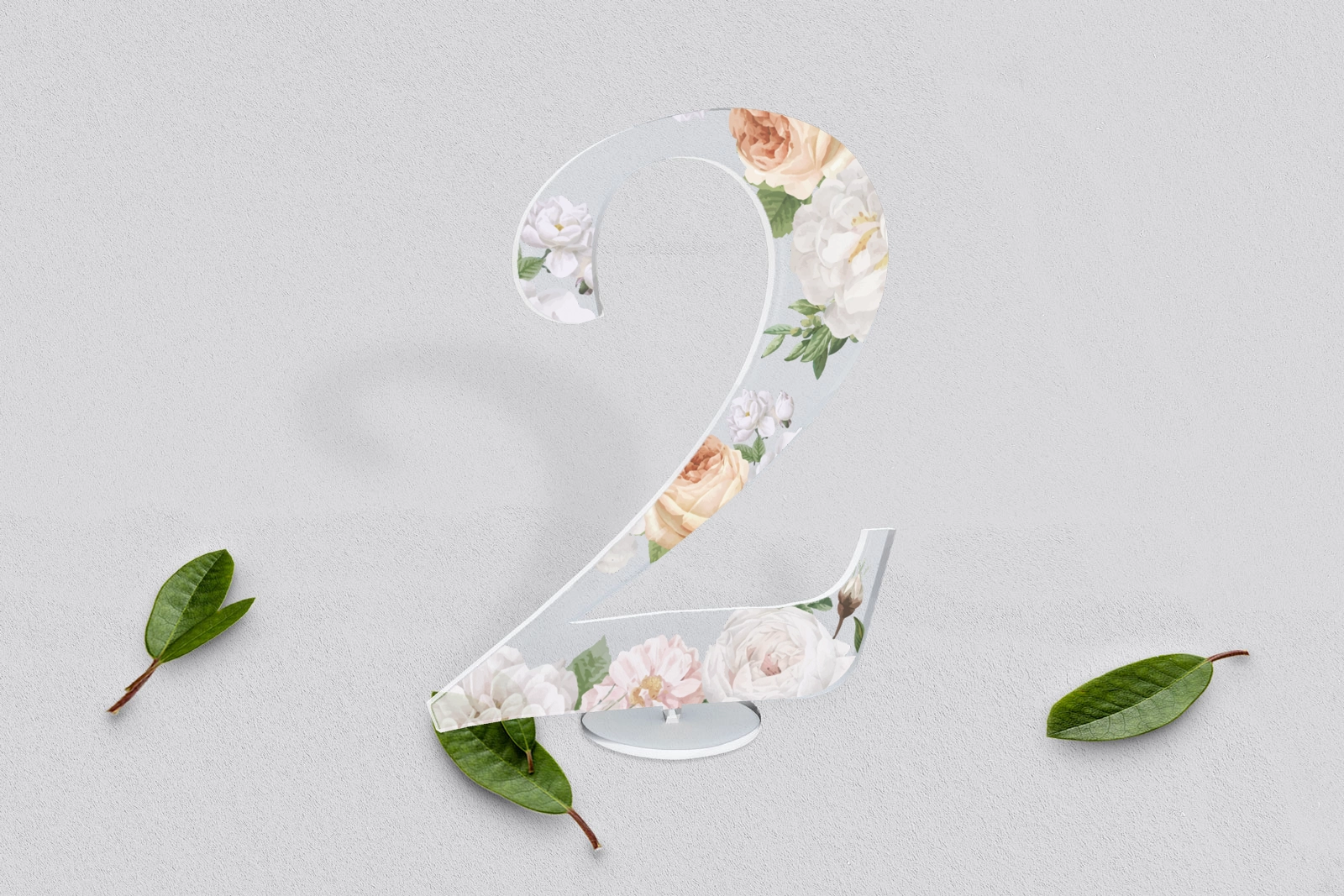 Akrylowe numery na stół weselny - Ofelia Motyw 3