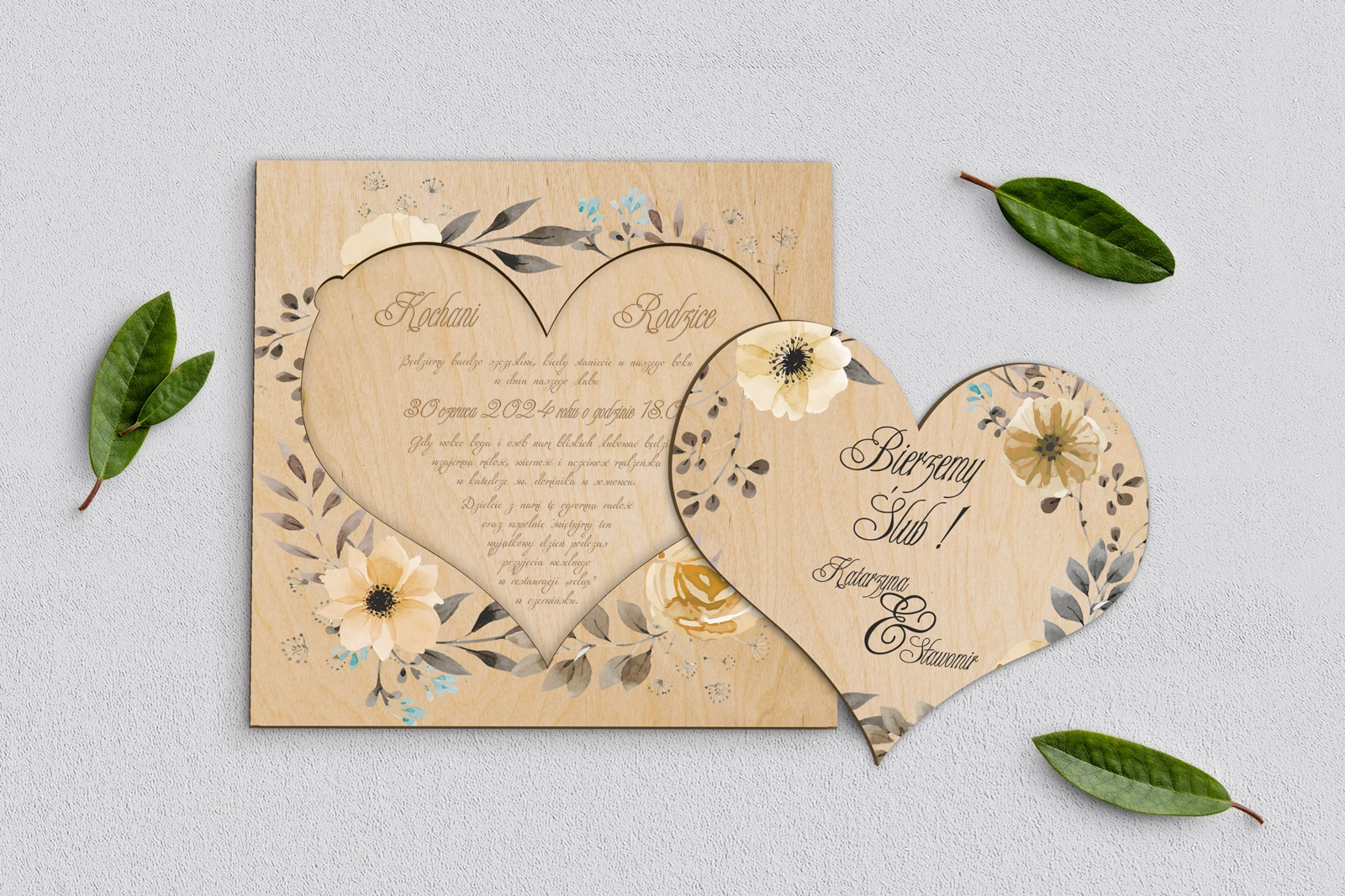 Drewniane Zaproszenie dla Rodziców - Akwarelowe Wianki Motyw 4