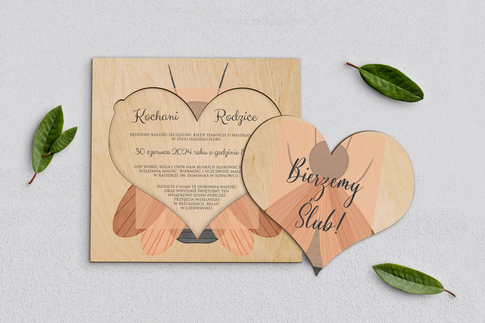 Drewniane Zaproszenie dla Rodziców - Butterflies - Motyw 2
