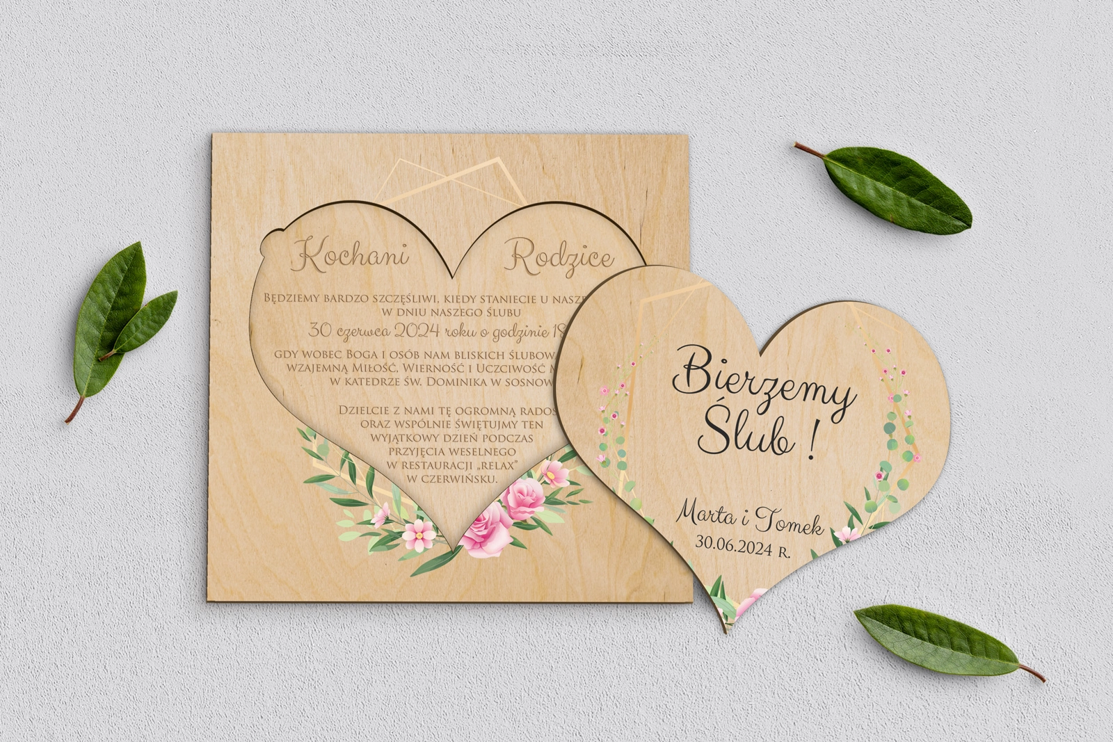 Drewniane Zaproszenie dla Rodziców - Flowers & Frame Motyw 4
