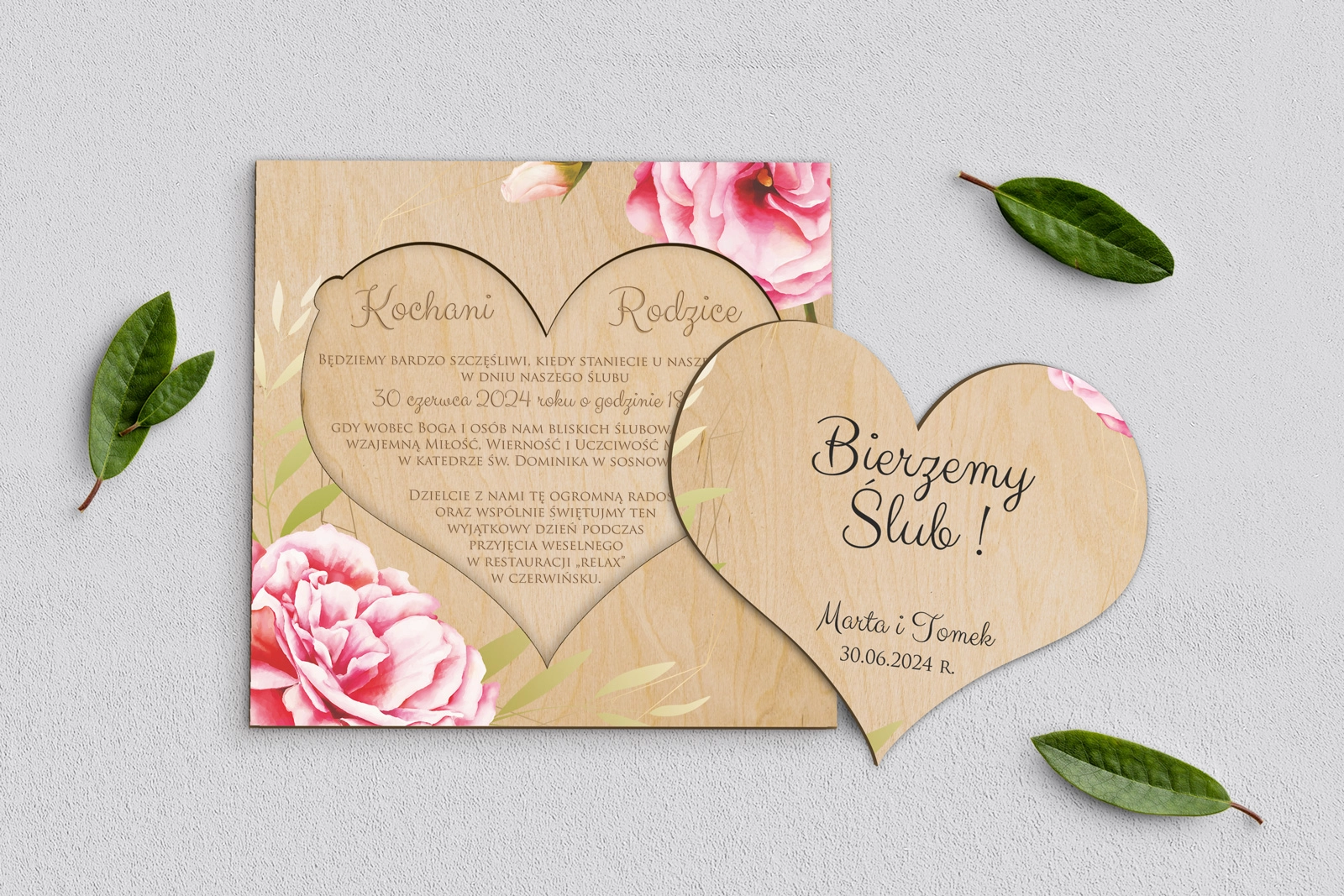 Drewniane Zaproszenie dla Rodziców - Flowers & Frame Motyw 5