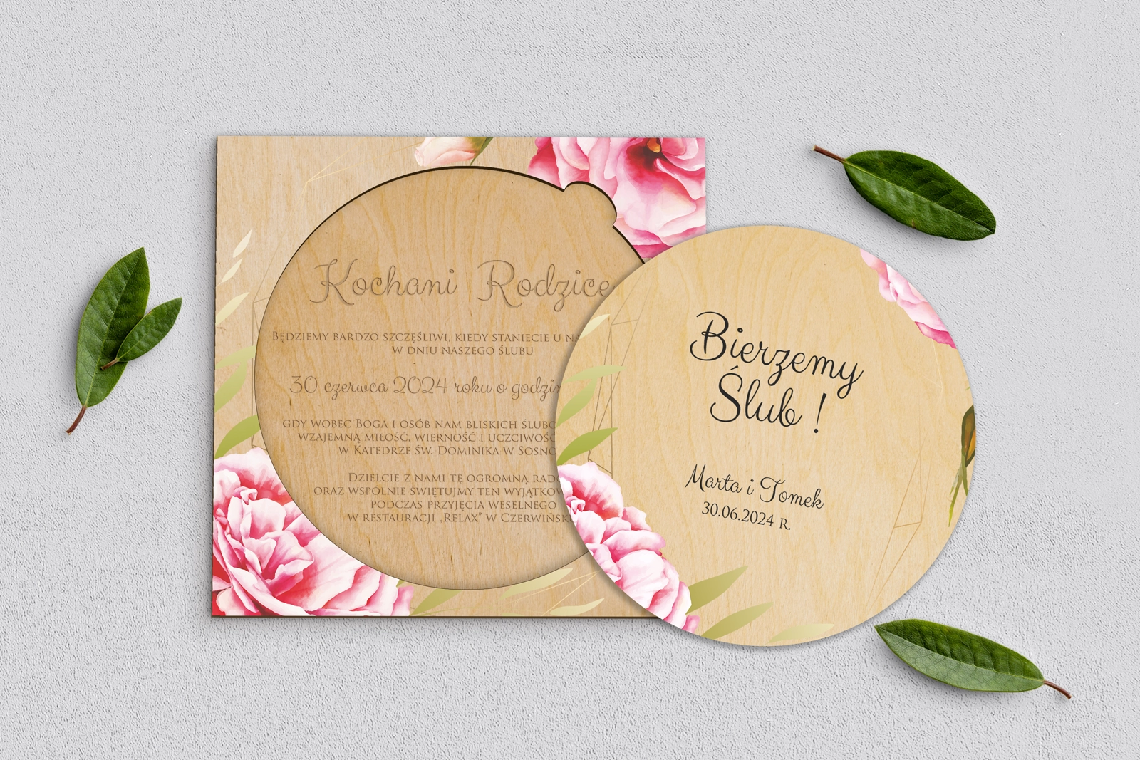 Drewniane Zaproszenie dla Rodziców Koło - Flowers & Frame Motyw 5