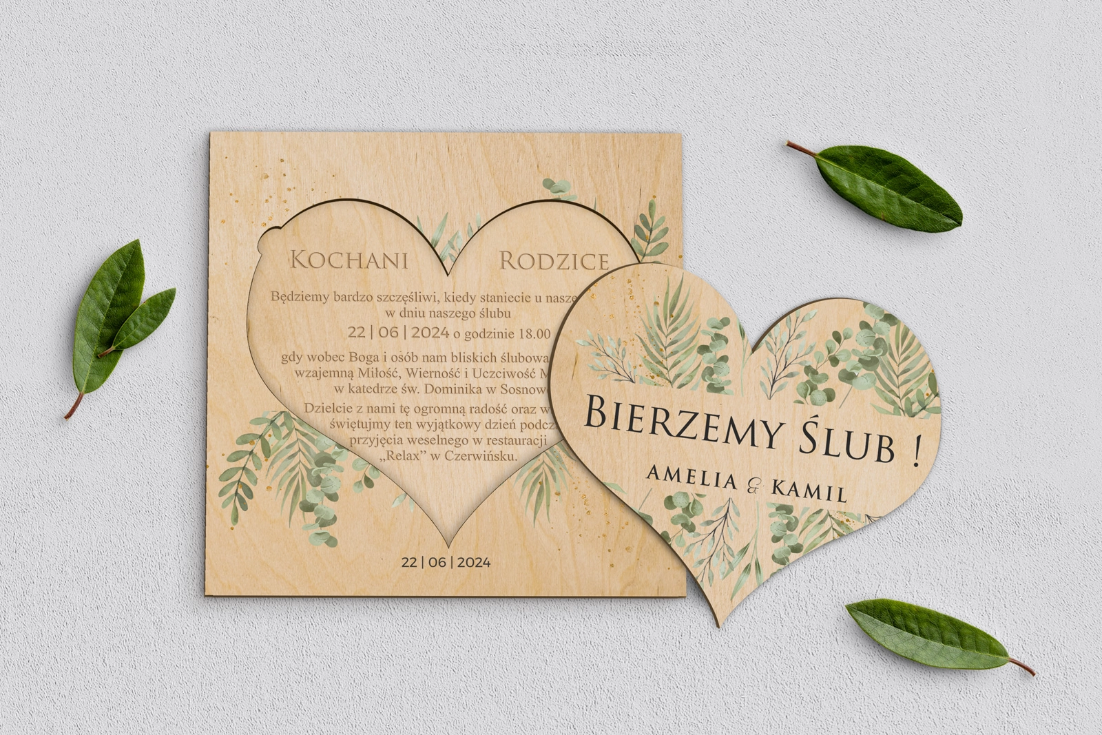 Drewniane Zaproszenie dla Rodziców - Leaves Motyw 2