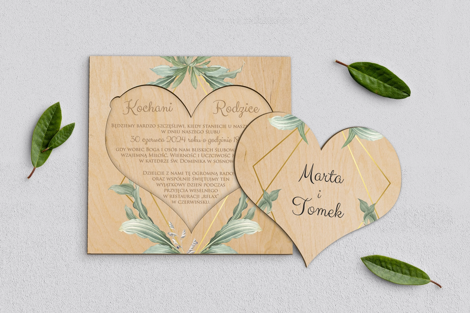 Drewniane Zaproszenie dla Rodziców - Liście Motyw 1