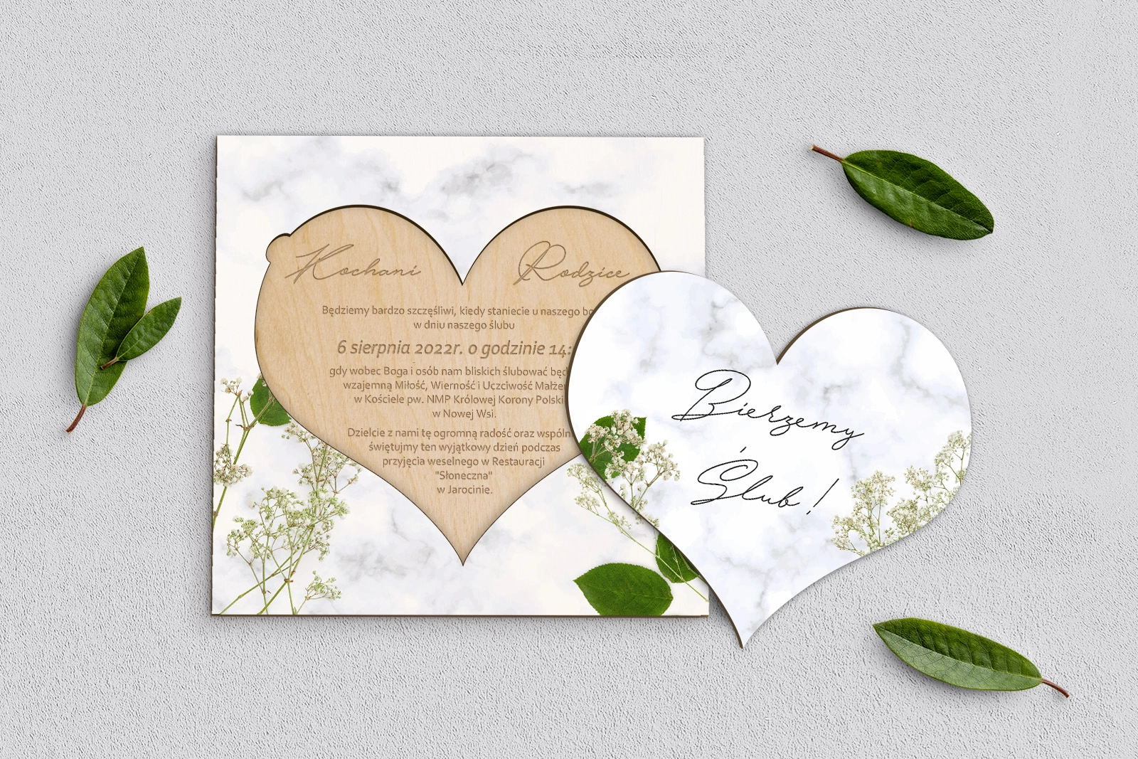 Drewniane Zaproszenie dla Rodziców - Marble Leaf motyw 3
