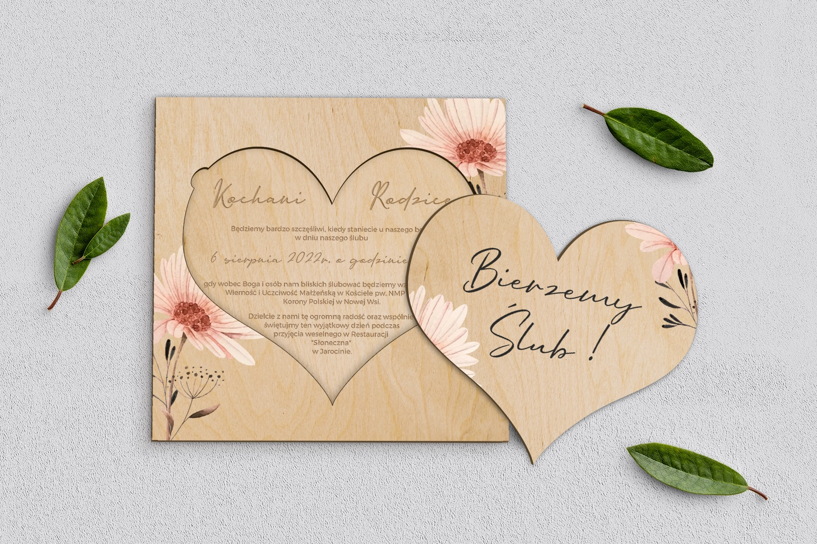 Drewniane Zaproszenie dla Rodziców - Natalie motyw 1