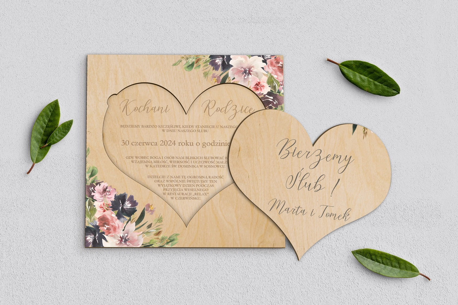 Drewniane Zaproszenie dla Rodziców - PasteLove Motyw 4
