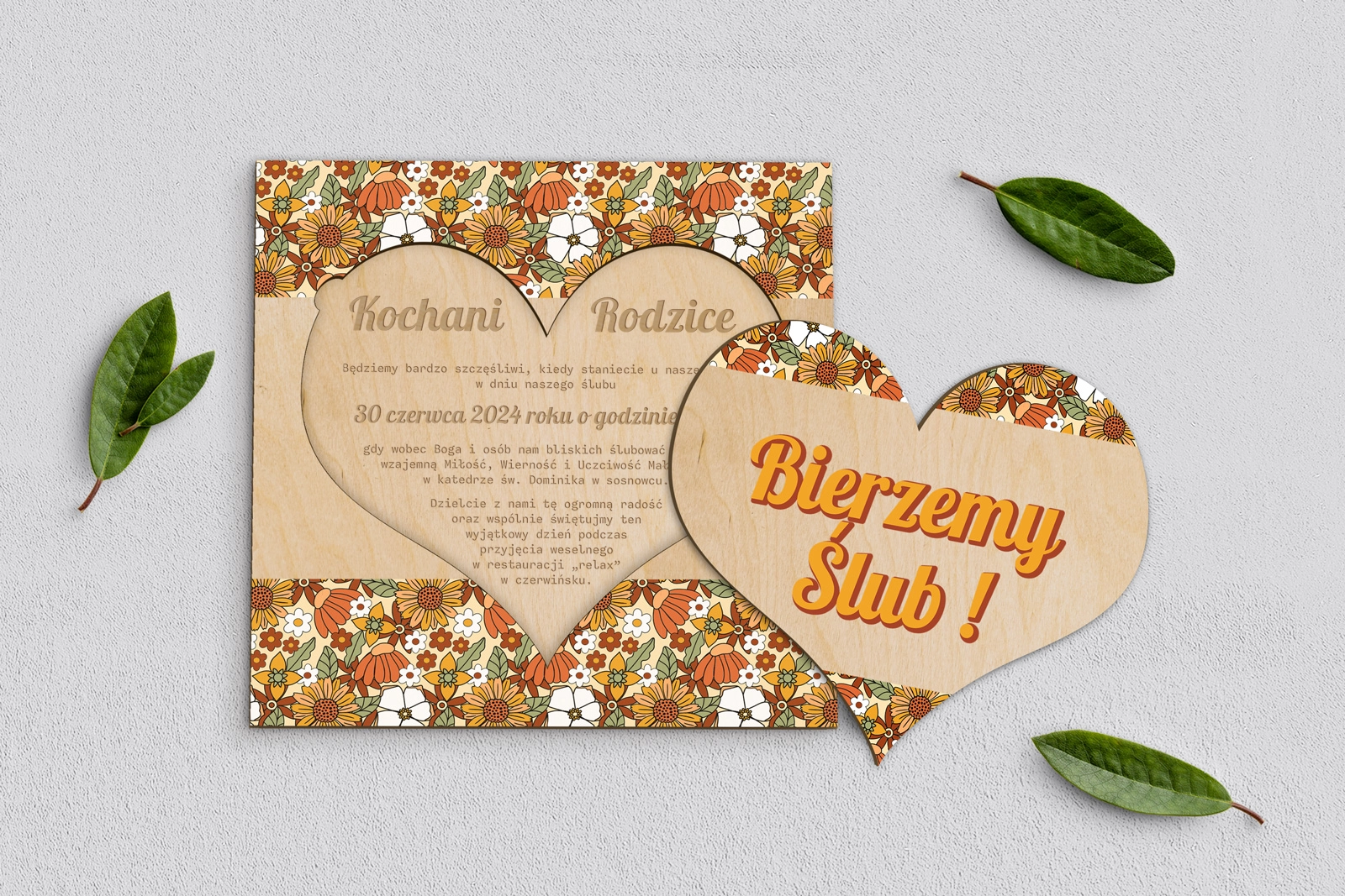 Drewniane Zaproszenie dla Rodziców - Retro Style Motyw 1