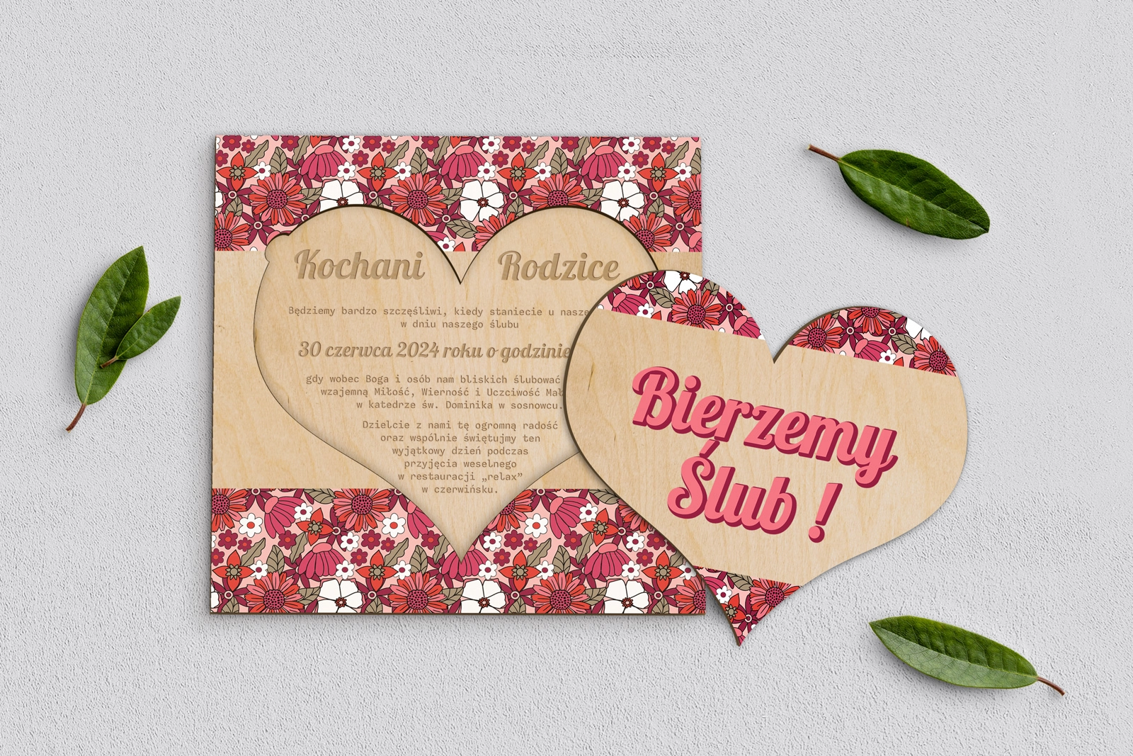 Drewniane Zaproszenie dla Rodziców - Retro Style Motyw 2