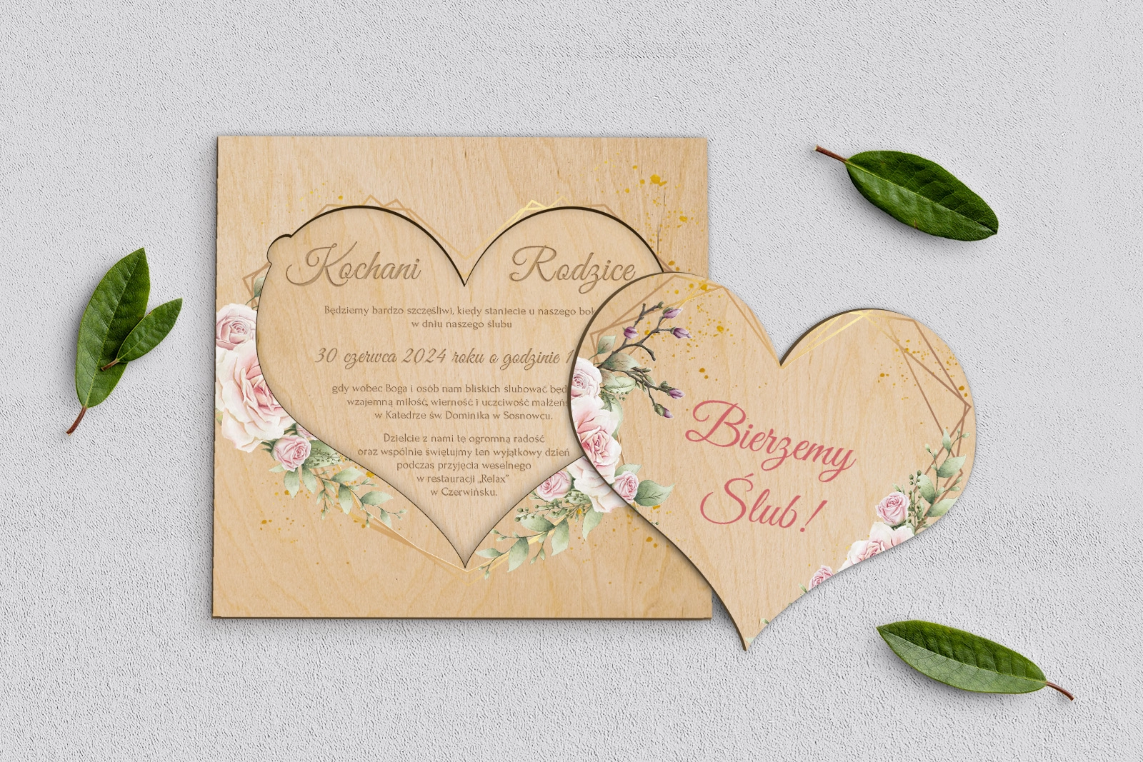 Drewniane Zaproszenie dla Rodziców - Złote Serca