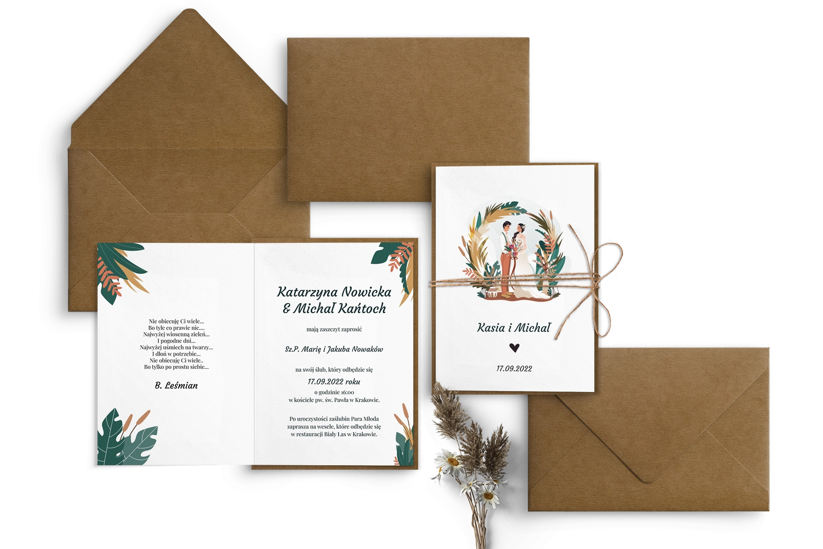 Ekologiczne składane Zaproszenia ślubne Boho wedding z eko sznurkiem