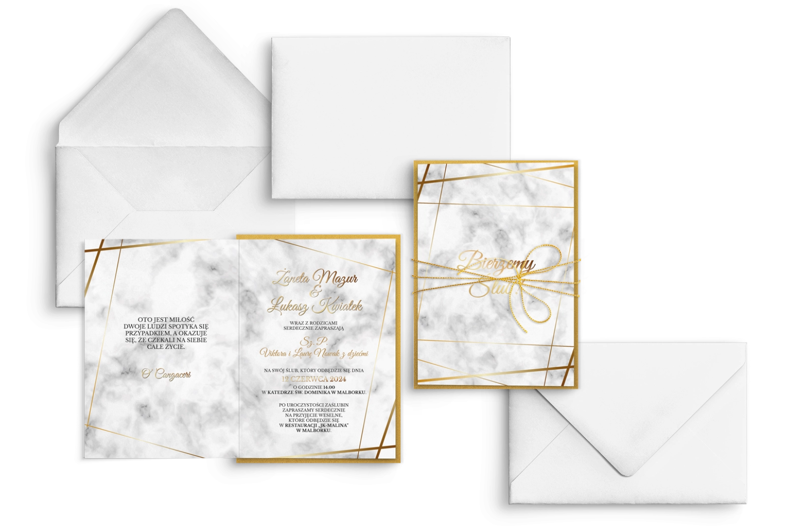 Eleganckie Zaproszenia ślubne Marmur & Złoto ze złotym papierem ozdobnym i sznurkiem