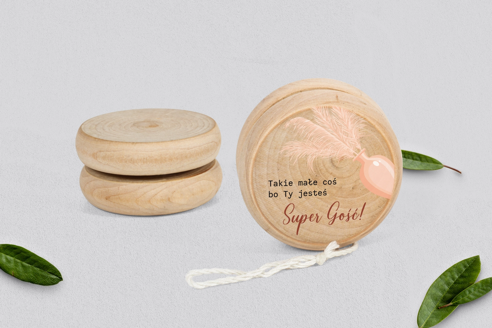 Jojo to oryginalny i nietypowy prezent dla gości weselnych, który szczególnie spodoba się dzieciakom. Nasze personalizowane jojo dostępne jest w wersji bez nadruku, z nadrukiem jednostronnym oraz z nadrukiem dwustronnym. Nadruk wykonywany jest na folii transparentnej, która jest naklejana na jojo, przez co uzyskujemy lepszą jakość wydruku. Z jednej strony możemy umieścić Wasze imiona i datę ślubu, a z drugiej - zabawny napis czy krótkie podziękowanie. Jojo możemy wykonać w każdym motywie z dowolnej kolekcji tak, żeby pasowało do wybranych zaproszeń ślubnych i pozostałych dodatków weselnych.