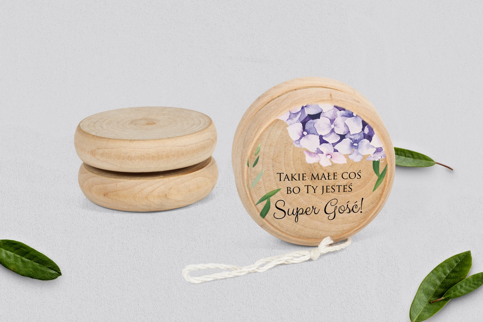 Jojo to oryginalny i nietypowy prezent dla gości weselnych, który szczególnie spodoba się dzieciakom. Nasze personalizowane jojo dostępne jest w wersji bez nadruku, z nadrukiem jednostronnym oraz z nadrukiem dwustronnym. Nadruk wykonywany jest na folii transparentnej, która jest naklejana na jojo, przez co uzyskujemy lepszą jakość wydruku. Z jednej strony możemy umieścić Wasze imiona i datę ślubu, a z drugiej - zabawny napis czy krótkie podziękowanie. Jojo możemy wykonać w każdym motywie z dowolnej kolekcji tak, żeby pasowało do wybranych zaproszeń ślubnych i pozostałych dodatków weselnych.