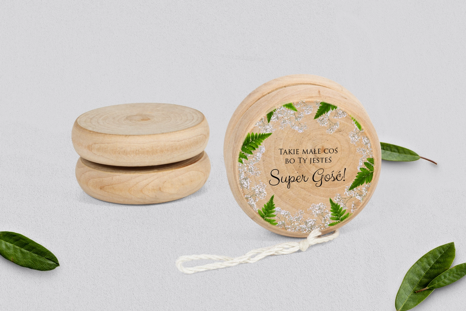 Jojo to oryginalny i nietypowy prezent dla gości weselnych, który szczególnie spodoba się dzieciakom. Nasze personalizowane jojo dostępne jest w wersji bez nadruku, z nadrukiem jednostronnym oraz z nadrukiem dwustronnym. Nadruk wykonywany jest na folii transparentnej, która jest naklejana na jojo, przez co uzyskujemy lepszą jakość wydruku. Z jednej strony możemy umieścić Wasze imiona i datę ślubu, a z drugiej - zabawny napis czy krótkie podziękowanie. Jojo możemy wykonać w każdym motywie z dowolnej kolekcji tak, żeby pasowało do wybranych zaproszeń ślubnych i pozostałych dodatków weselnych.
