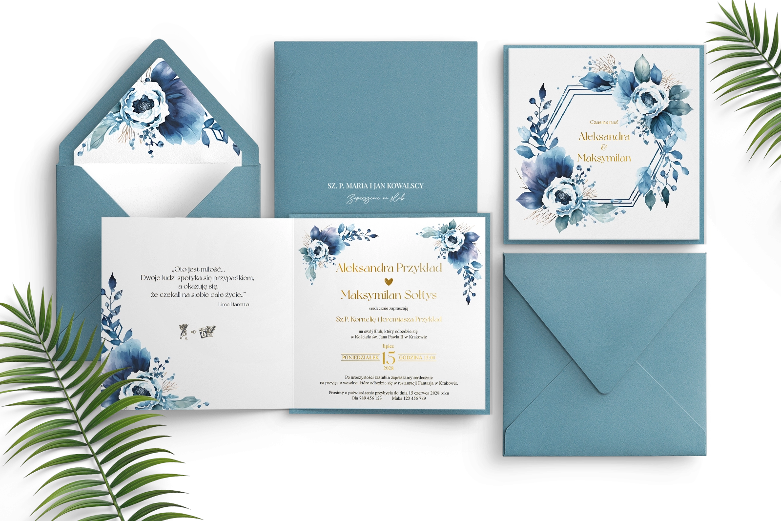 Wszystkie treści zaproszenia oraz dodatkowych wkładek są dowolnie personalizowane. Możesz zmienić każdą treść na swoim zaproszeniu. Podczas wypełniania Formularza Personalizacji opisz nam jak chcesz, aby wyglądało Twoje zaproszenie. Grafik przygotuje projekt skrojony specjalnie dla Ciebie.