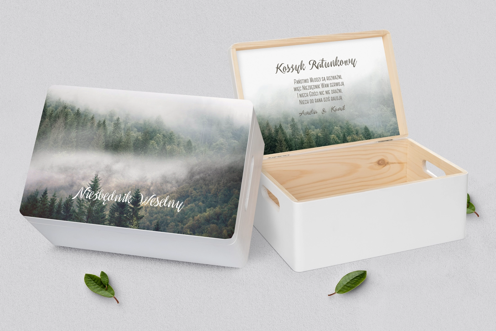 Koszyczek ratunkowy weselny biały - Forest - Motyw 2
