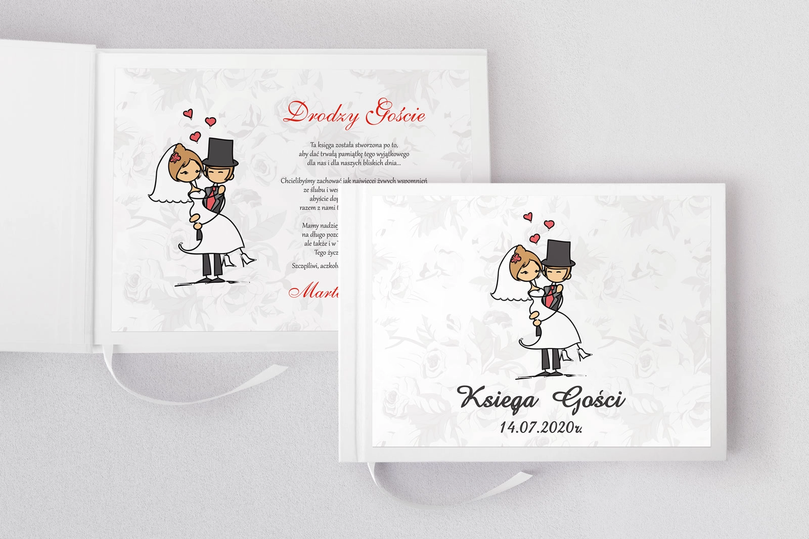 Księga Gości z kolekcji zakochani występuje w dwóch kolorach podobnie jak zaproszenia. Wyboru koloru