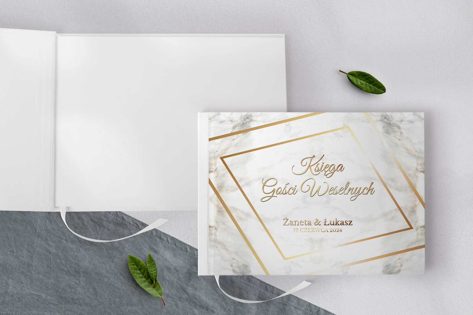 Księga Gości Weselnych Marmur & Złoto Motyw 1