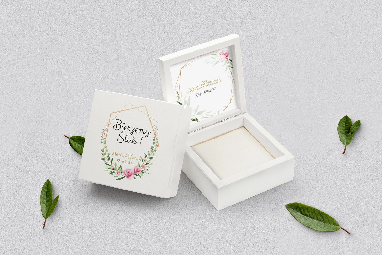 Na tej karcie produktu kupujesz Pudełka na obrączki w konfiguracji określonej w specyfikacji.