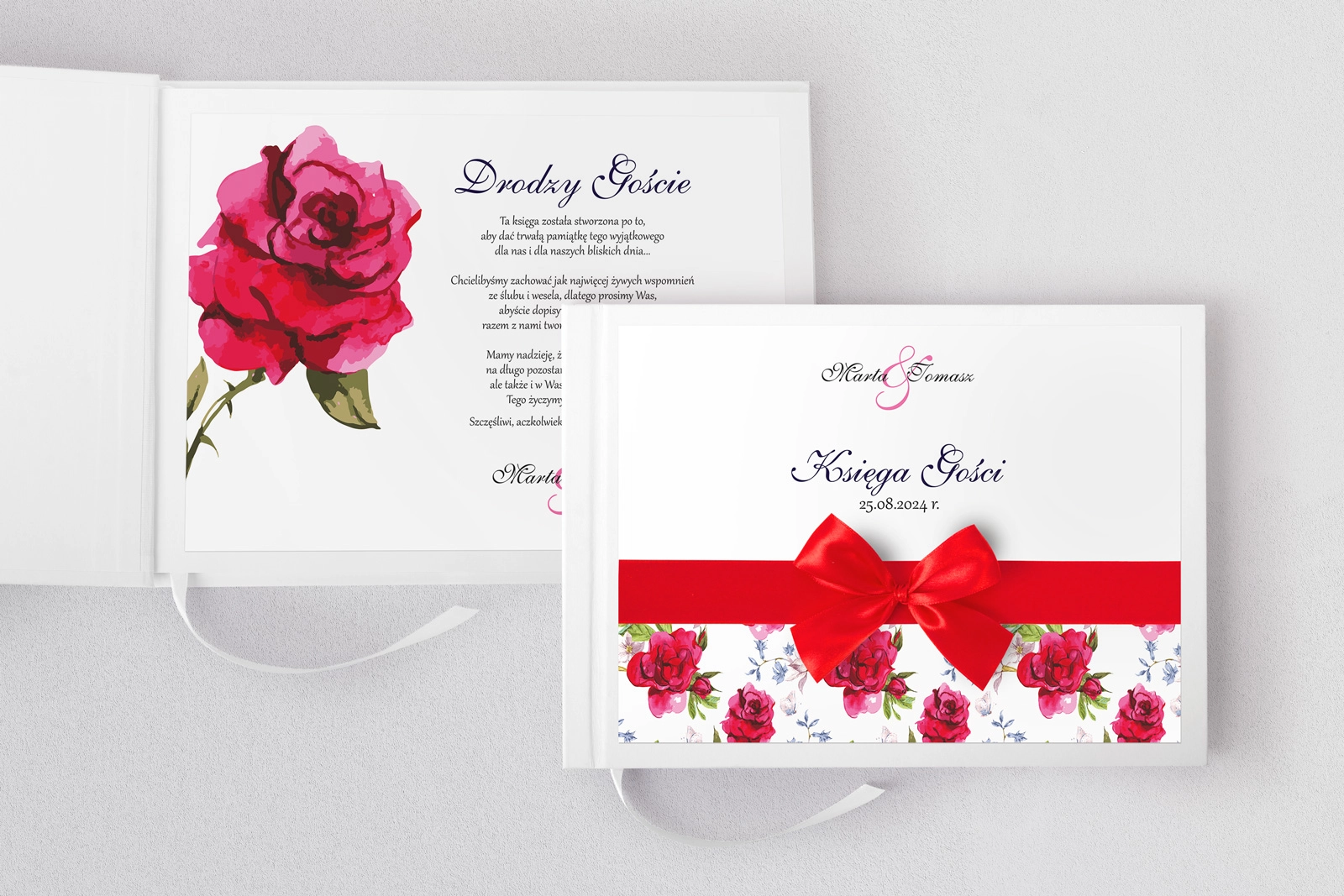 Księga Gości weselnych Laura stworzona w pięknych wzorach pasujących do zaproszeń ślubnych Kwiatowe Pole. Dzięki białym kartom o gramaturze 120 gr. doskonale nadaje się do wpisów od Waszych gości. Jeżeli planujecie na weselu fotobudkę to idealnie nada się do wklejania śmiesznych zdjęć.