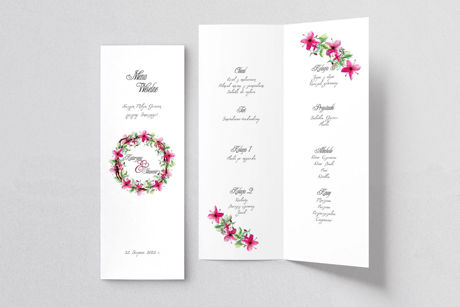 Menu Weselne Akwarelowe Wianki - Motyw 2