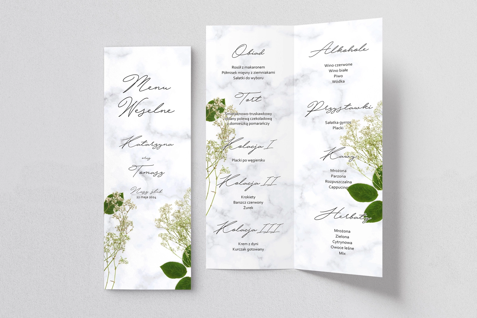 Menu Weselne Marble leaf - Motyw 3