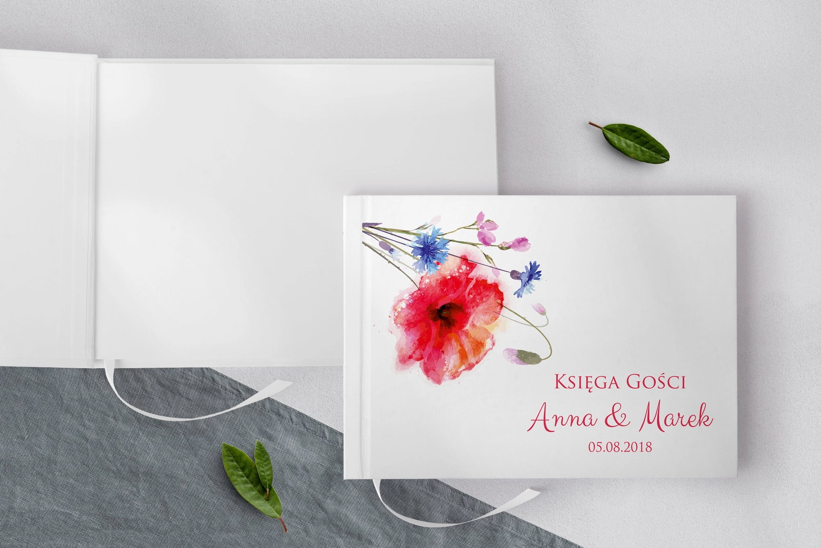 Księga Gości weselnych Sweet Love stworzona w pięknych wzorach pasujących do zaproszeń ślubnych Kwiatowe Pole. Dzięki białym kartom o gramaturze 120 gr. doskonale nadaje się do wpisów od Waszych gości. Jeżeli planujecie na weselu fotobudkę to idealnie nada się do wklejania śmiesznych zdjęć.