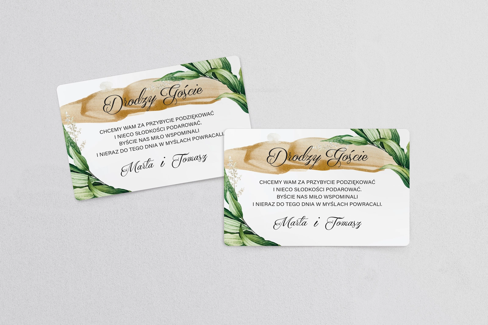 Aby otrzymać darmową personalizację ustaliliśmy minimalną ilość zamówienia na 20 szt. Jeżeli interesuje Cię zamówienie mniejszej ilości należy dodatkowo dokupić usługę Personalizacji Zaproszeń Ślubnych.