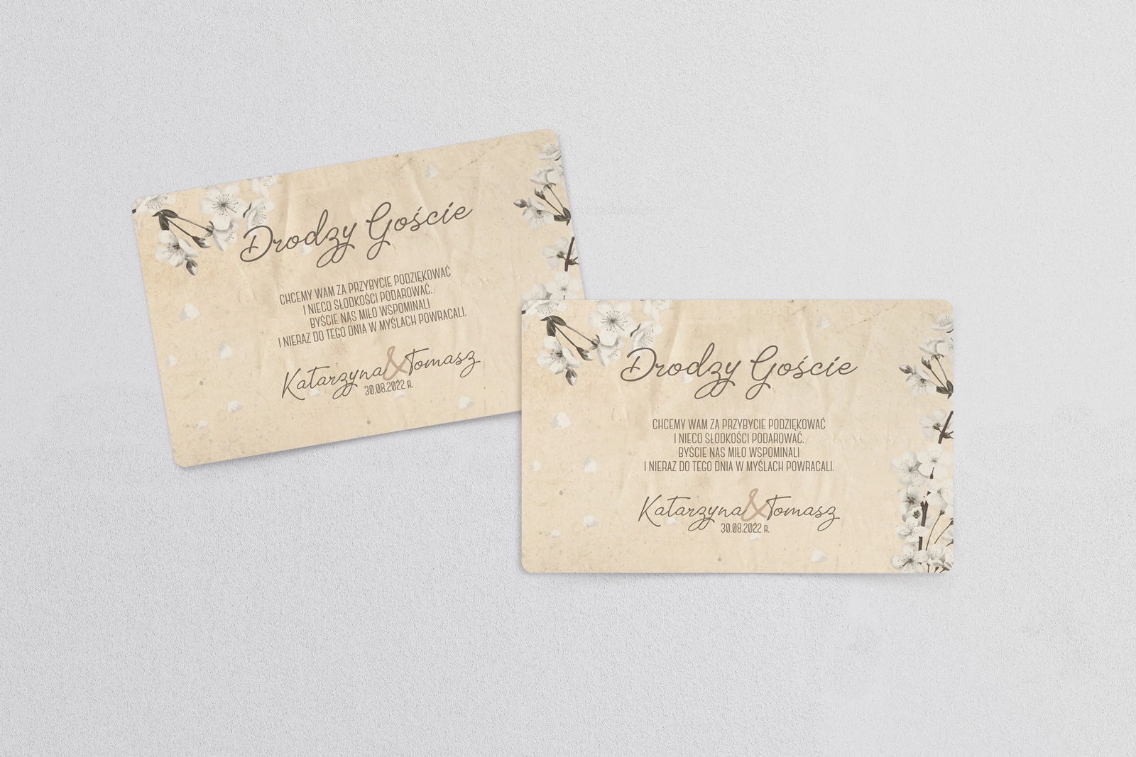 Aby otrzymać darmową personalizację ustaliliśmy minimalną ilość zamówienia na 20 szt. Jeżeli interesuje Cię zamówienie mniejszej ilości należy dodatkowo dokupić usługę Personalizacji Zaproszeń Ślubnych.
