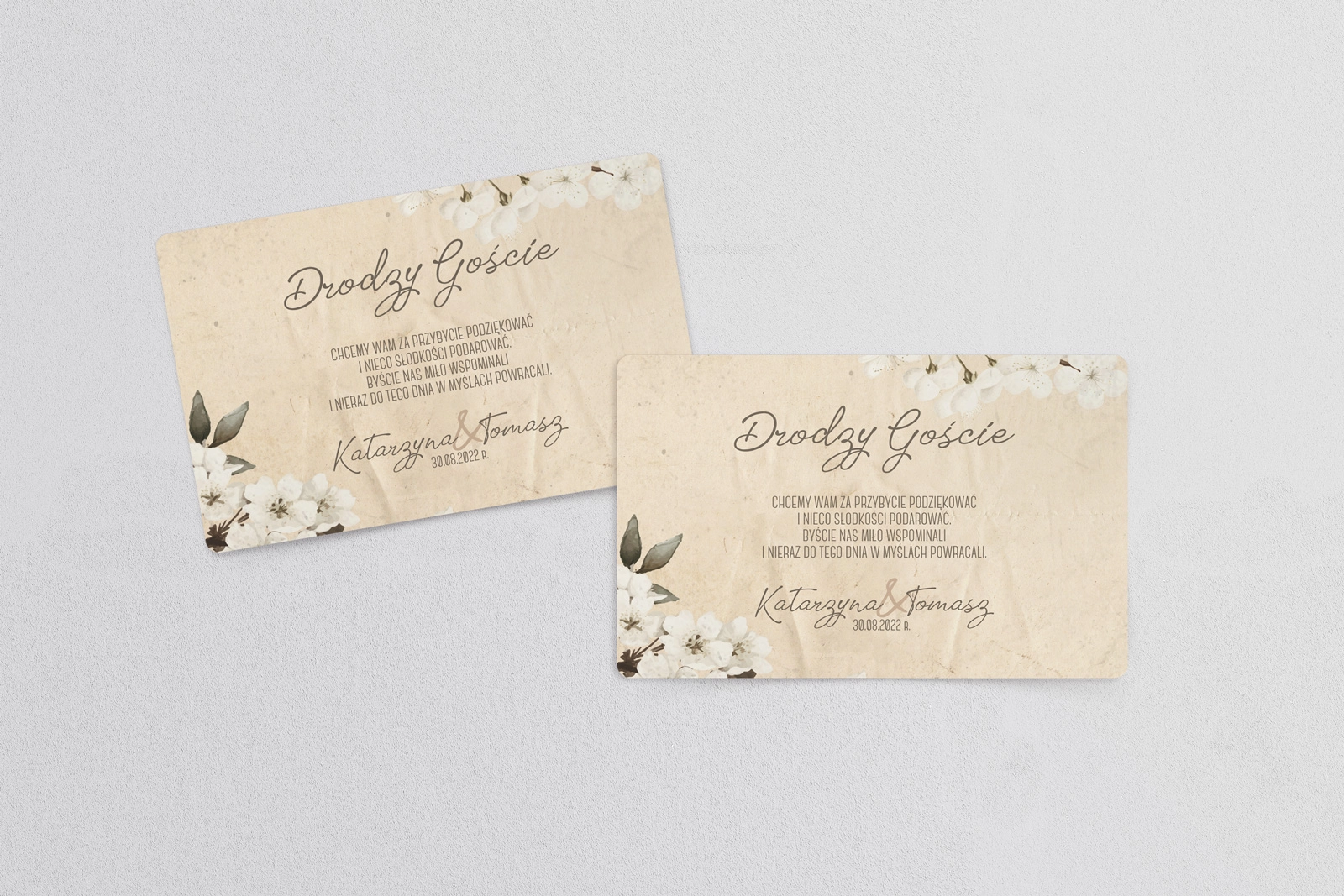 Aby otrzymać darmową personalizację ustaliliśmy minimalną ilość zamówienia na 20 szt. Jeżeli interesuje Cię zamówienie mniejszej ilości należy dodatkowo dokupić usługę Personalizacji Zaproszeń Ślubnych.