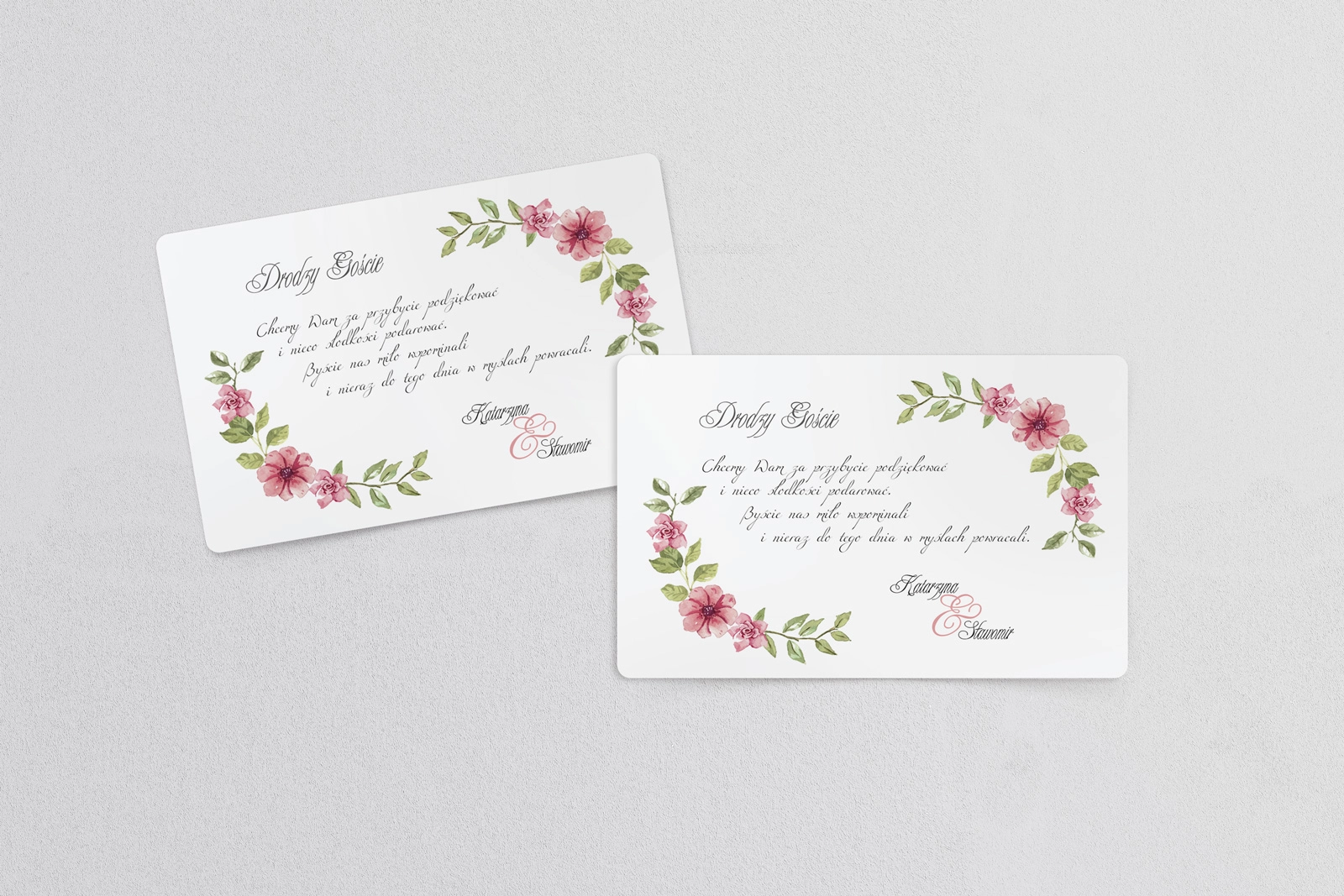Aby otrzymać darmową personalizację ustaliliśmy minimalną ilość zamówienia na 20 szt. Jeżeli interesuje Cię zamówienie mniejszej ilości należy dodatkowo dokupić usługę Personalizacji Zaproszeń Ślubnych.
