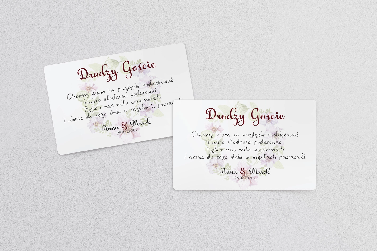 Aby otrzymać darmową personalizację ustaliliśmy minimalną ilość zamówienia na 20 szt. Jeżeli interesuje Cię zamówienie mniejszej ilości należy dodatkowo dokupić usługę Personalizacji Zaproszeń Ślubnych.