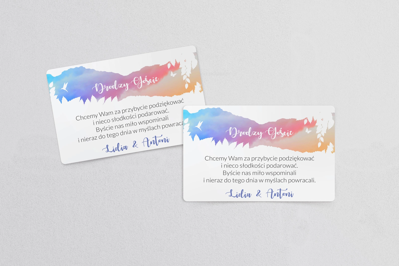 Aby otrzymać darmową personalizację ustaliliśmy minimalną ilość zamówienia na 20 szt. Jeżeli interesuje Cię zamówienie mniejszej ilości należy dodatkowo dokupić usługę Personalizacji Zaproszeń Ślubnych.