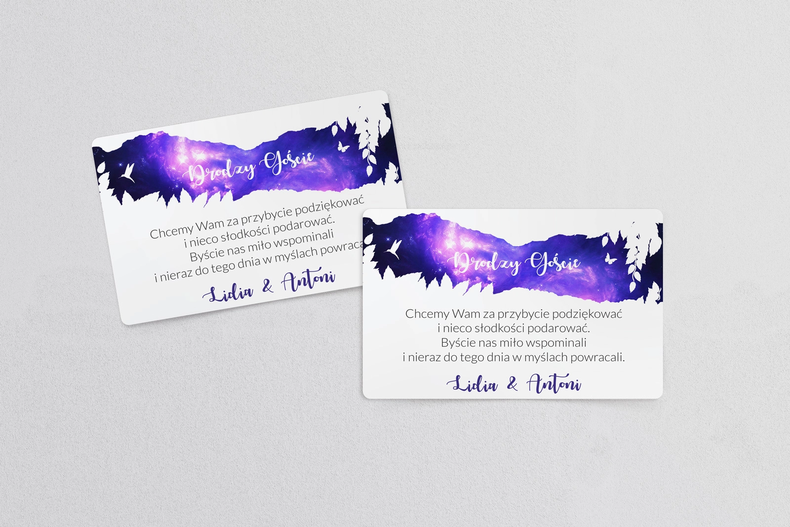 Aby otrzymać darmową personalizację ustaliliśmy minimalną ilość zamówienia na 20 szt. Jeżeli interesuje Cię zamówienie mniejszej ilości należy dodatkowo dokupić usługę Personalizacji Zaproszeń Ślubnych.