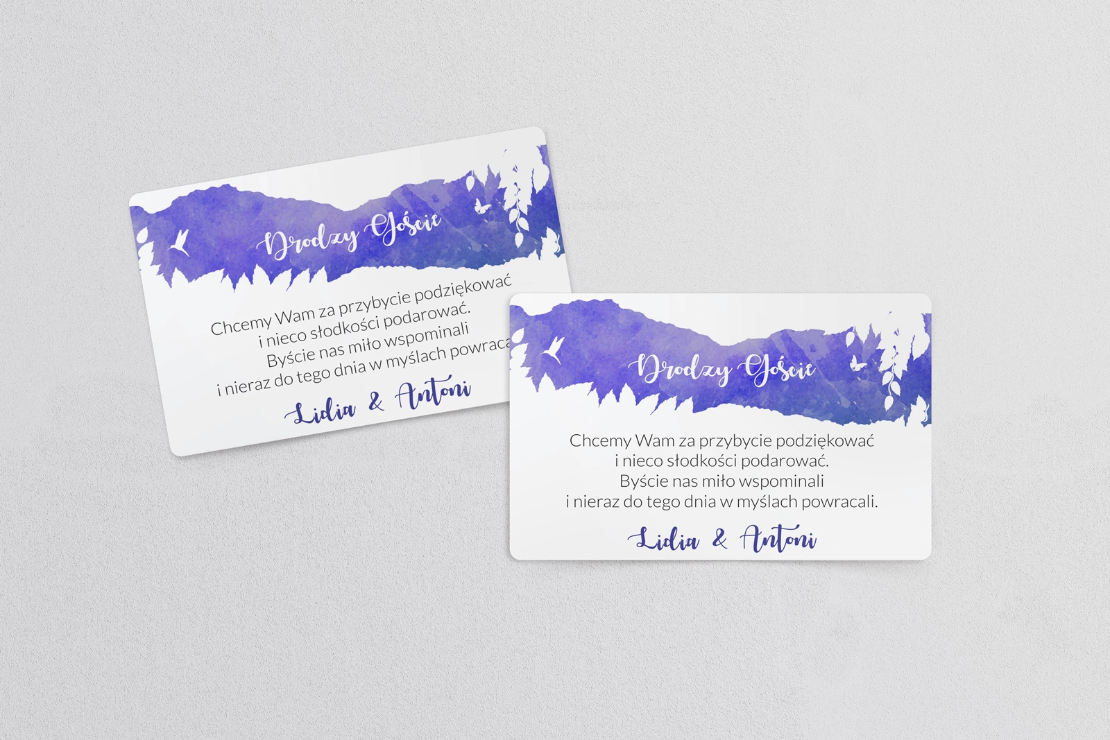 Aby otrzymać darmową personalizację ustaliliśmy minimalną ilość zamówienia na 20 szt. Jeżeli interesuje Cię zamówienie mniejszej ilości należy dodatkowo dokupić usługę Personalizacji Zaproszeń Ślubnych.