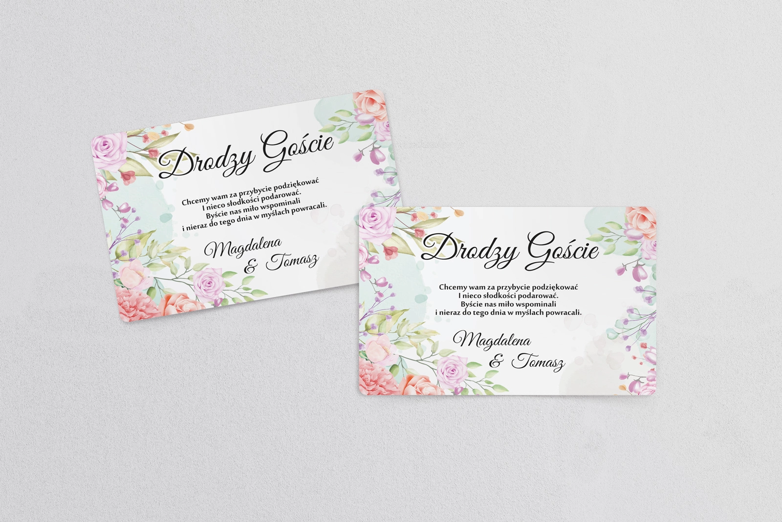 Aby otrzymać darmową personalizację ustaliliśmy minimalną ilość zamówienia na 20 szt. Jeżeli interesuje Cię zamówienie mniejszej ilości należy dodatkowo dokupić usługę Personalizacji Zaproszeń Ślubnych.