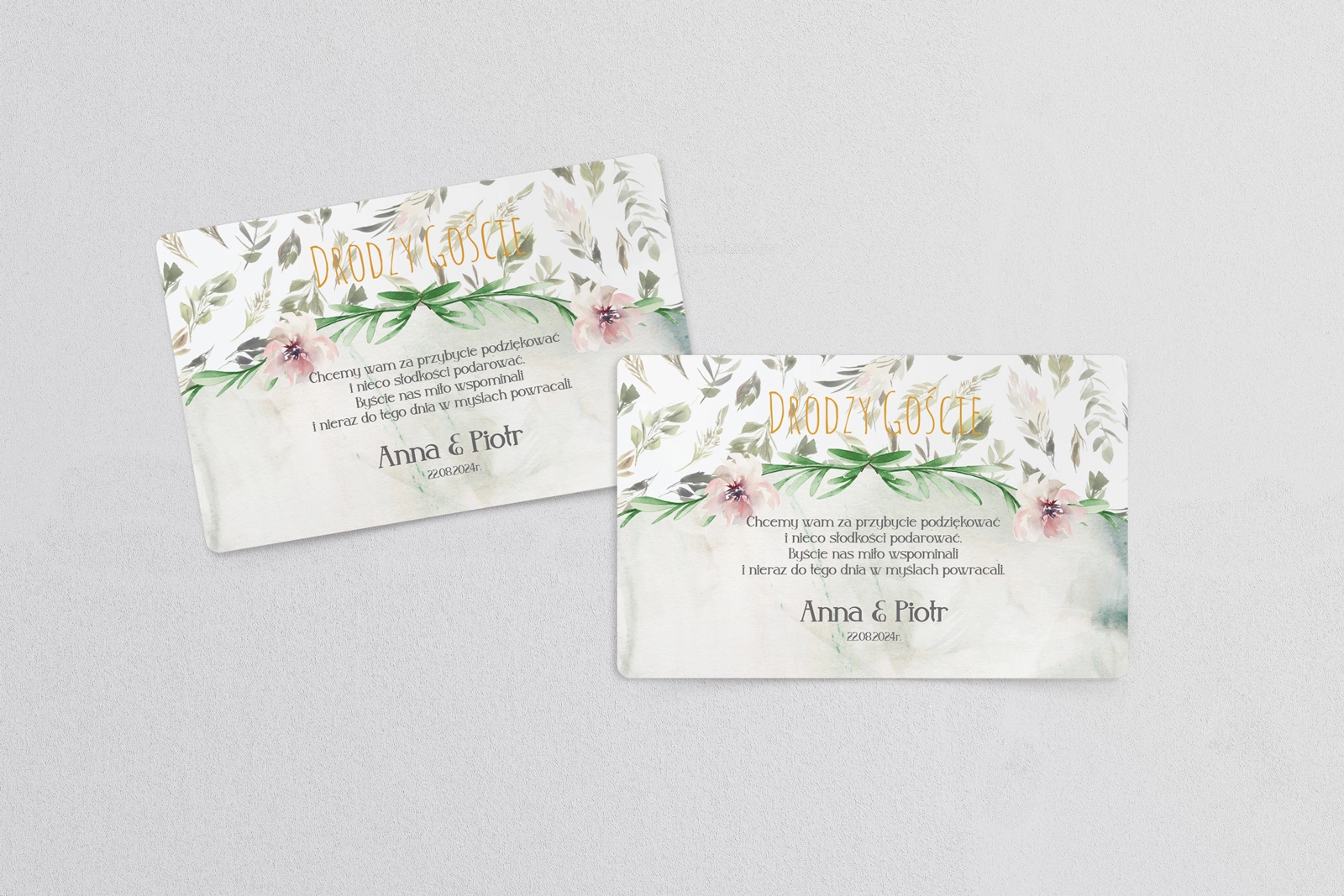 Aby otrzymać darmową personalizację ustaliliśmy minimalną ilość zamówienia na 20 szt. Jeżeli interesuje Cię zamówienie mniejszej ilości należy dodatkowo dokupić usługę Personalizacji Zaproszeń Ślubnych.