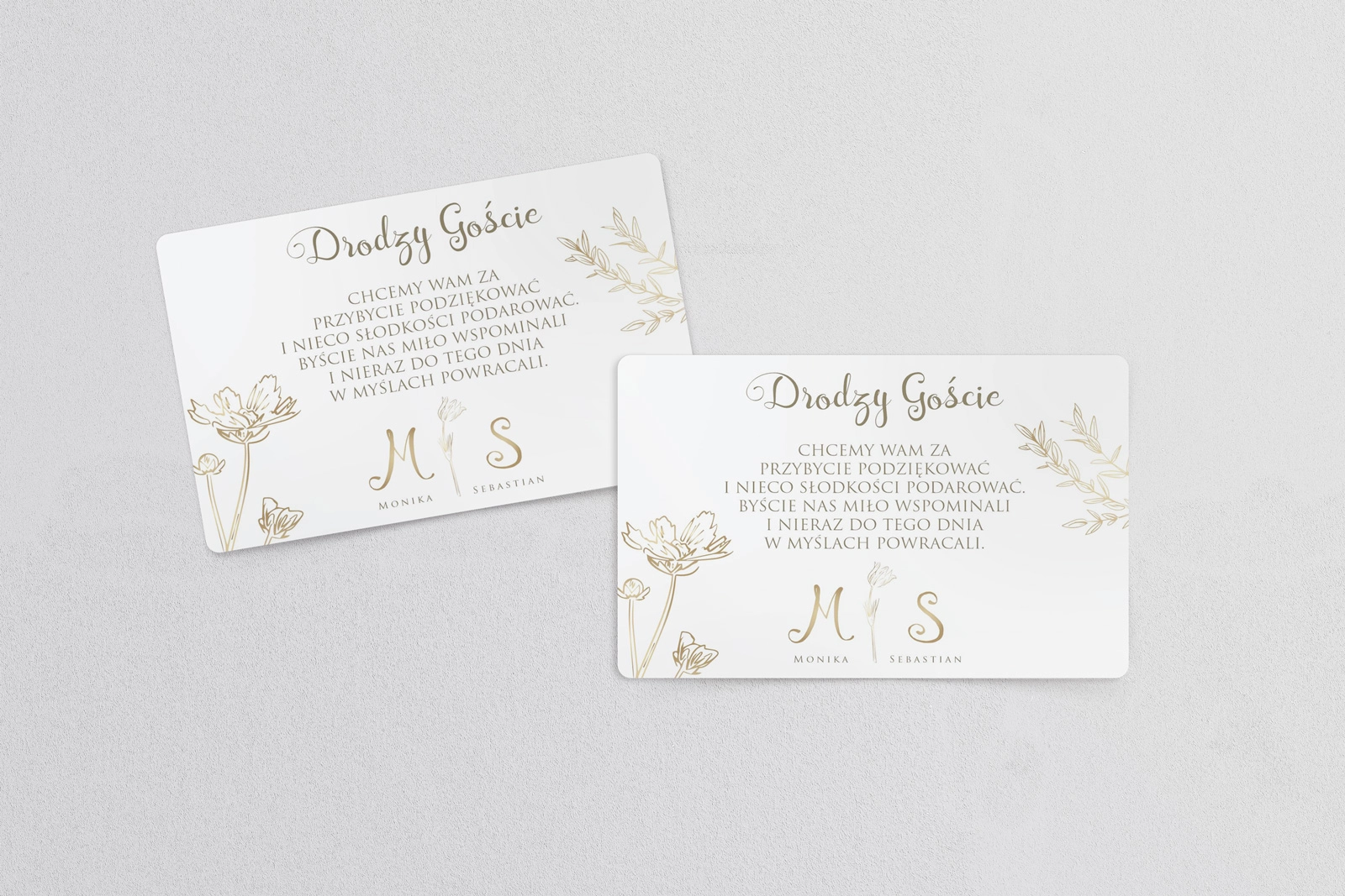 Aby otrzymać darmową personalizację ustaliliśmy minimalną ilość zamówienia na 20 szt. Jeżeli interesuje Cię zamówienie mniejszej ilości należy dodatkowo dokupić usługę Personalizacji Zaproszeń Ślubnych.