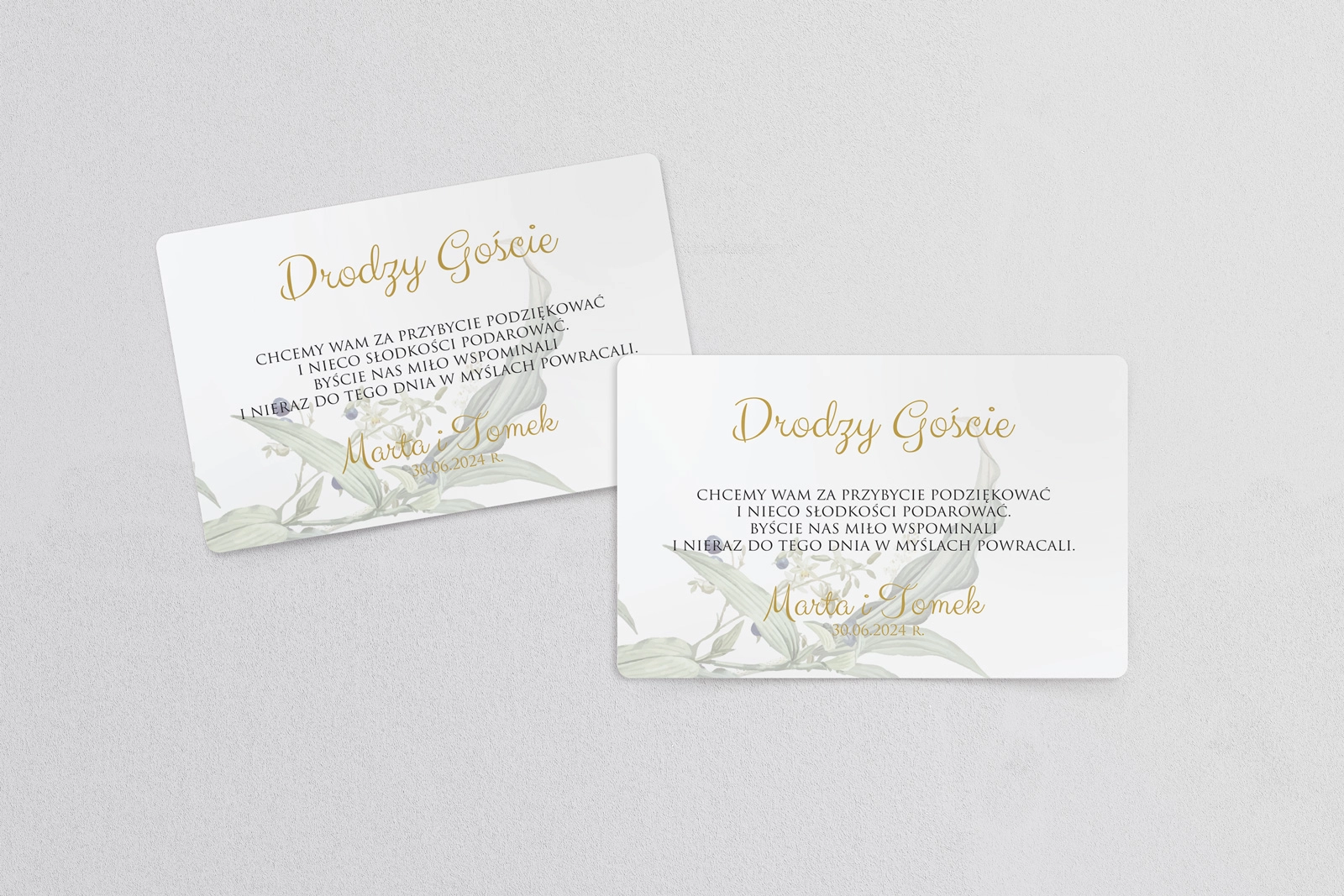 Aby otrzymać darmową personalizację ustaliliśmy minimalną ilość zamówienia na 20 szt. Jeżeli interesuje Cię zamówienie mniejszej ilości należy dodatkowo dokupić usługę Personalizacji Zaproszeń Ślubnych.