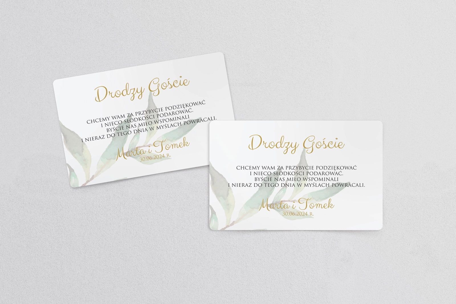 Aby otrzymać darmową personalizację ustaliliśmy minimalną ilość zamówienia na 20 szt. Jeżeli interesuje Cię zamówienie mniejszej ilości należy dodatkowo dokupić usługę Personalizacji Zaproszeń Ślubnych.