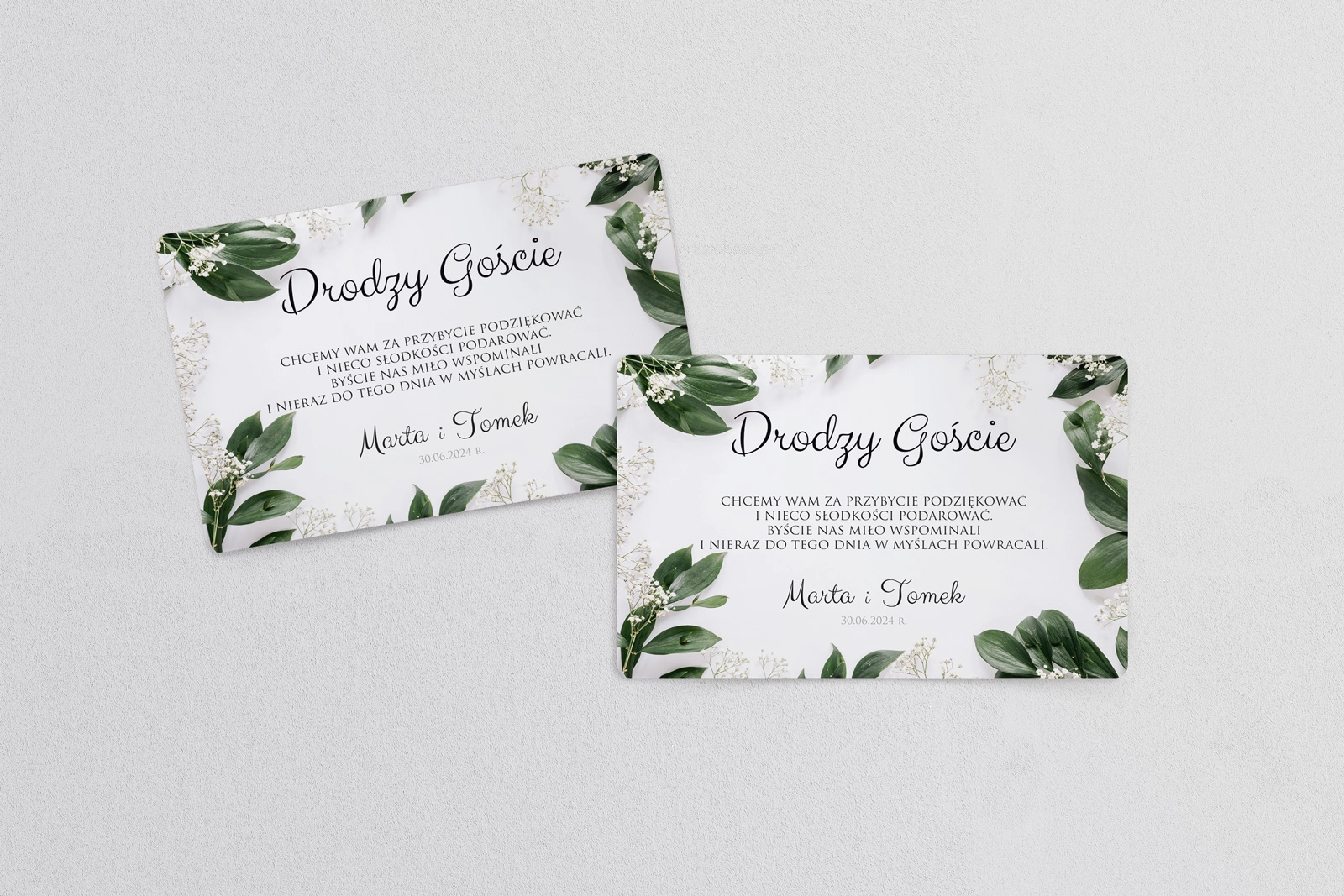 Aby otrzymać darmową personalizację ustaliliśmy minimalną ilość zamówienia na 20 szt. Jeżeli interesuje Cię zamówienie mniejszej ilości należy dodatkowo dokupić usługę Personalizacji Zaproszeń Ślubnych.
