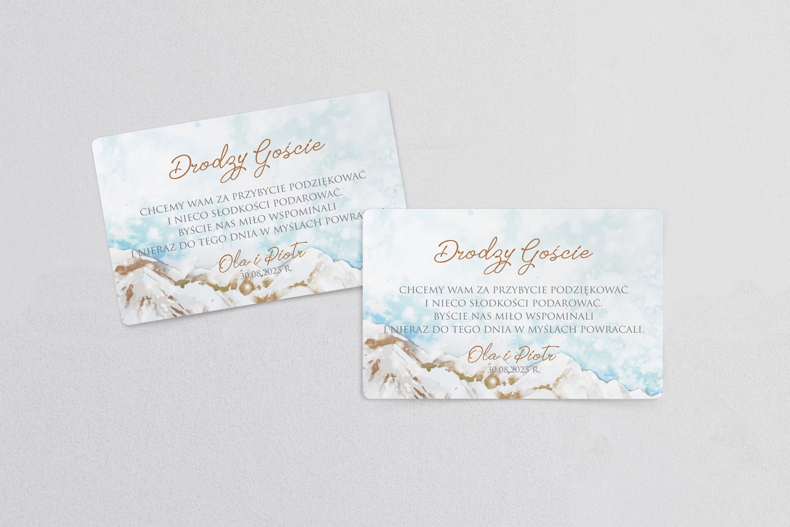 Aby otrzymać darmową personalizację ustaliliśmy minimalną ilość zamówienia na 20 szt. Jeżeli interesuje Cię zamówienie mniejszej ilości należy dodatkowo dokupić usługę Personalizacji Zaproszeń Ślubnych.
