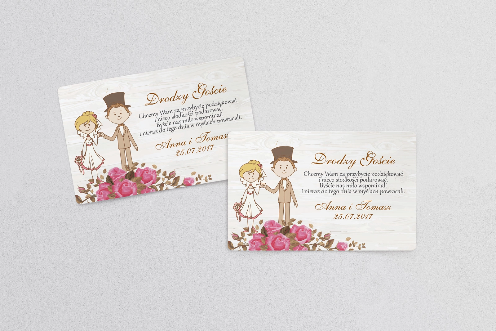 Aby otrzymać darmową personalizację ustaliliśmy minimalną ilość zamówienia na 20 szt. Jeżeli interesuje Cię zamówienie mniejszej ilości należy dodatkowo dokupić usługę Personalizacji Zaproszeń Ślubnych.