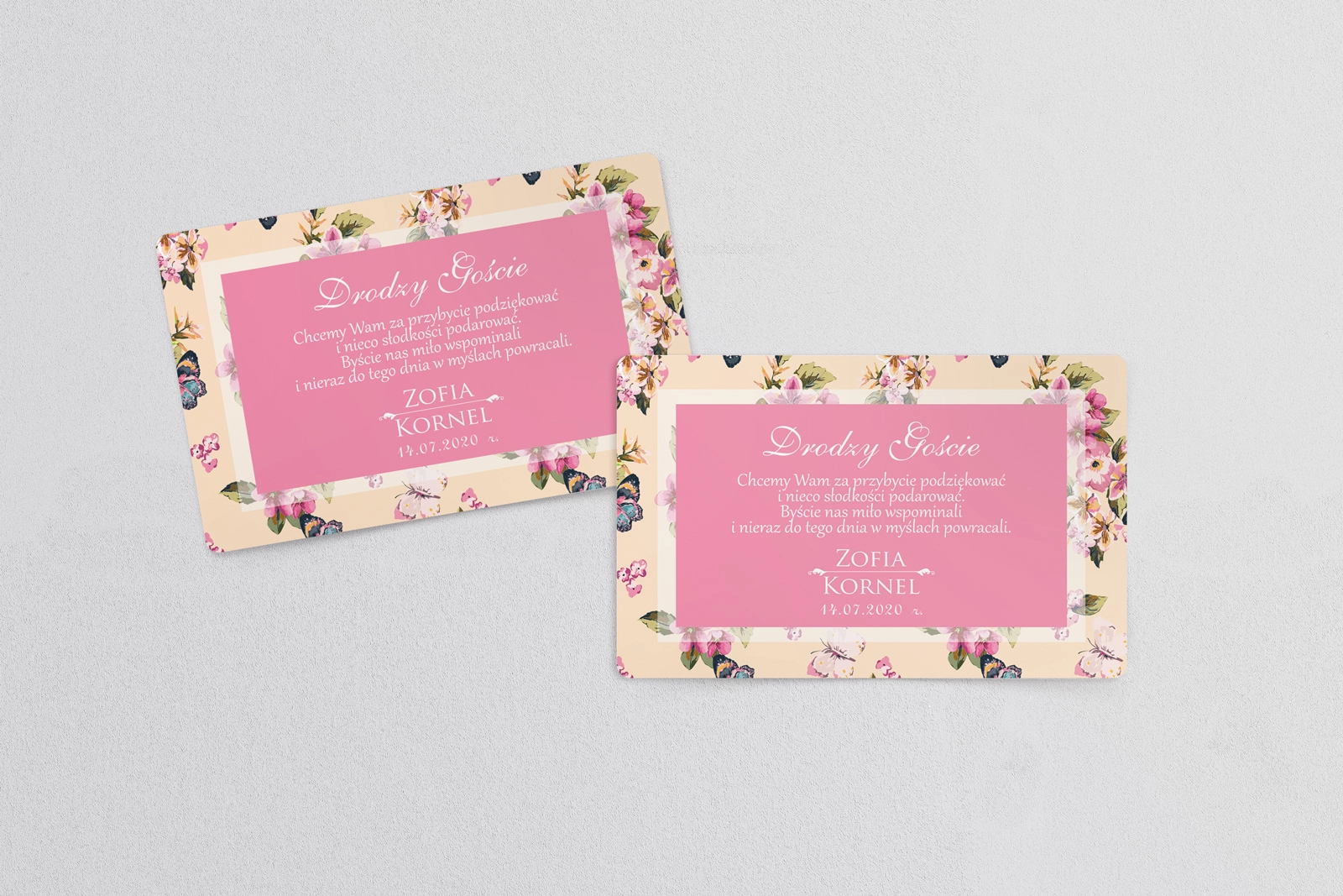 Aby otrzymać darmową personalizację ustaliliśmy minimalną ilość zamówienia na 20 szt. Jeżeli interesuje Cię zamówienie mniejszej ilości należy dodatkowo dokupić usługę Personalizacji Zaproszeń Ślubnych.