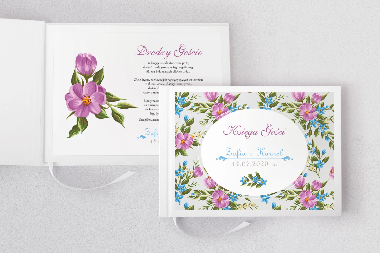 Księga gości weselnych Pobieramy się to piękna forma pamiątki z Waszego wesela z motywami kwiatowymi w stylu akwareli. Dzięki białym kartom o gramaturze 120 gr. doskonale nadaje się do wpisów od Waszych gości. Jeżeli planujecie na weselu fotobudkę to idealnie nada się do wklejania śmiesznych zdjęć.