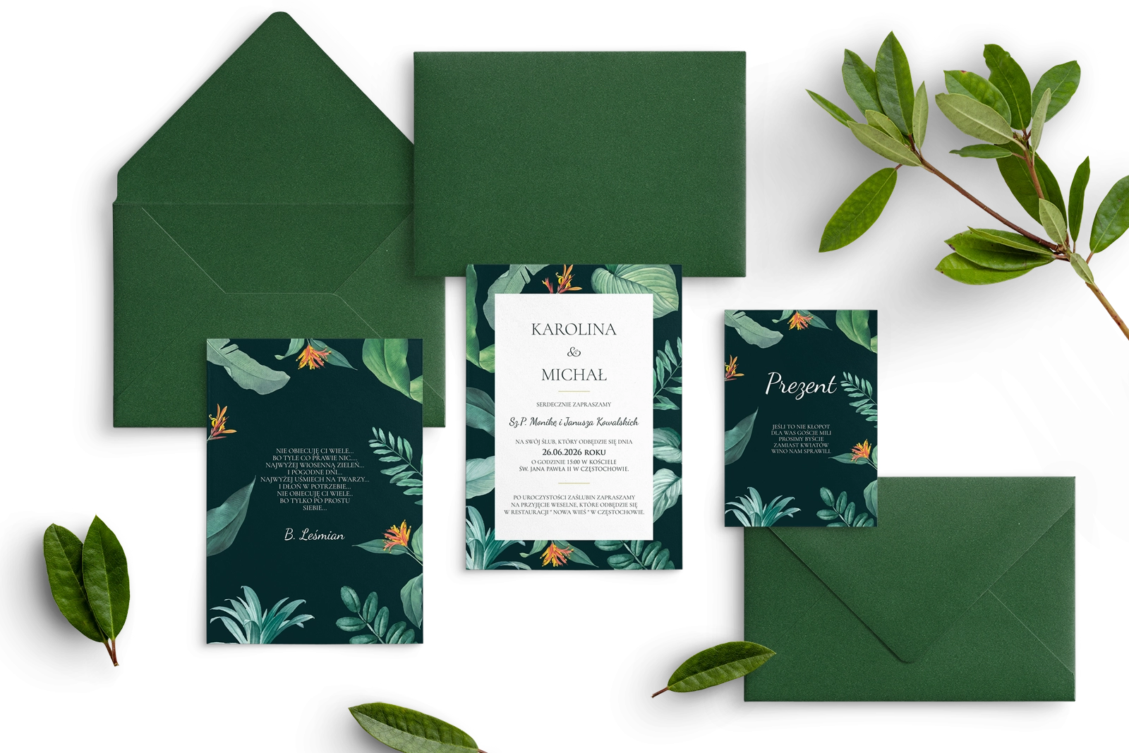 Nowoczesne zielone Zaproszenia ślubne Exotic