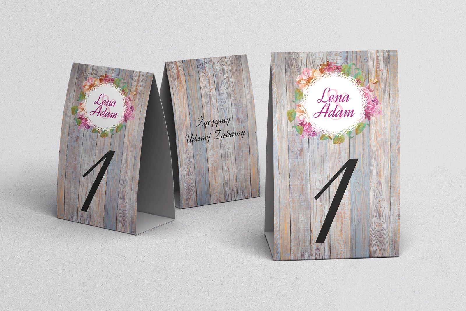 Numery na stół z serii Rustical przyozdobią każdy stolik i każdą sale swoimi pięknymi kwiatami namalowanymi na opalanych deskach. Wspaniałe żywe kolory wraz z połączeniem grubych teksturowych papierów przyciągną wzrok i uwagę Waszych gości pomagając odnaleźć swoje miejsce siedzące na weselu.