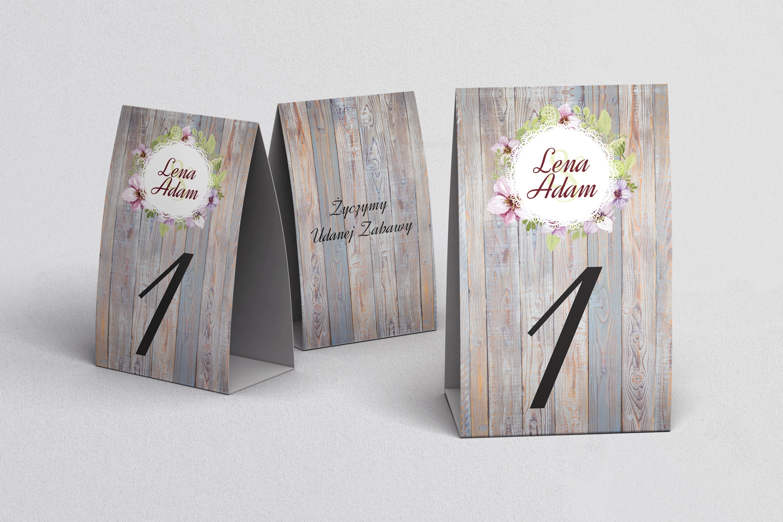 Numery na stół z serii Rustical przyozdobią każdy stolik i każdą sale swoimi pięknymi kwiatami namalowanymi na opalanych deskach. Wspaniałe żywe kolory wraz z połączeniem grubych teksturowych papierów przyciągną wzrok i uwagę Waszych gości pomagając odnaleźć swoje miejsce siedzące na weselu.