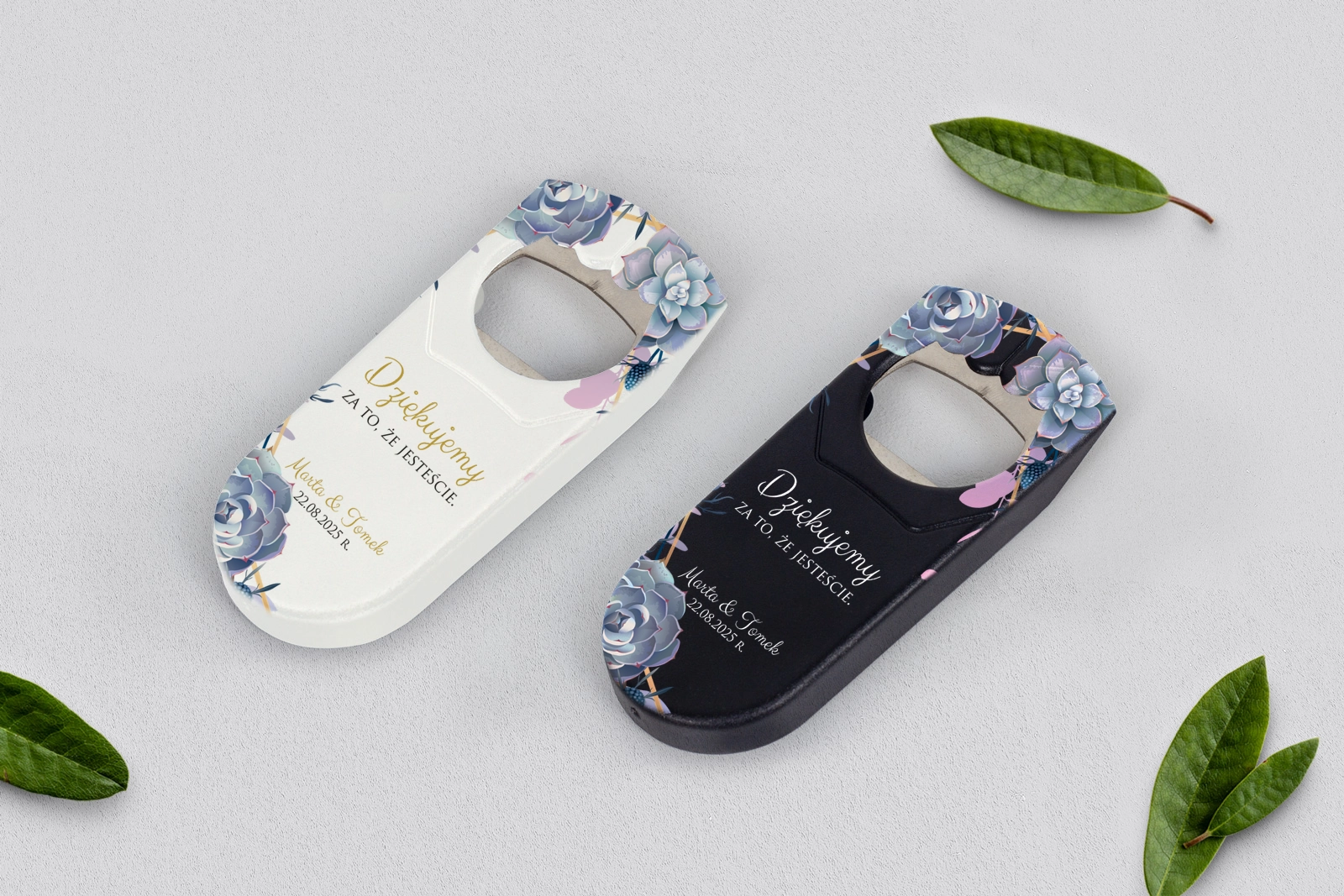 Otwieracz i zamykacz do butelek to praktyczny prezent dla gości weselnych (głównie dla Panów ??). Nie zapominając jednak o piękniejszej połówce przygotowaliśmy m. in: kieszonkowe lusterka z których każda Pani się ucieszy. A dla najmłodszych gości proponujemy drewnianą zabawkę Jojo lub układankę (pozostałe prezenty znajdują się w produktach powiązanych poniżej). W końcu nikt nie powiedział, że prezentem dla gości musi być jeden upominek ?.